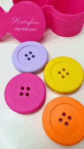 👉 Designová těžítka ve tvaru barevných knoflíků – vyrobená na míru pro Hanylou.
