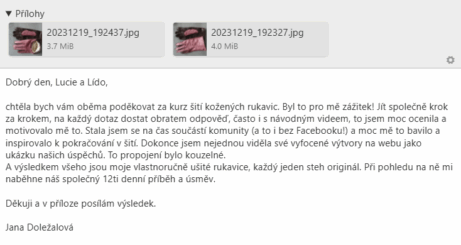 Napište mi e-mail na info@hanylou.cz nebo zprávu na Instagram siju.tedy.jsem, či na Facebook Hanylou- Šiju, tedy jsem.