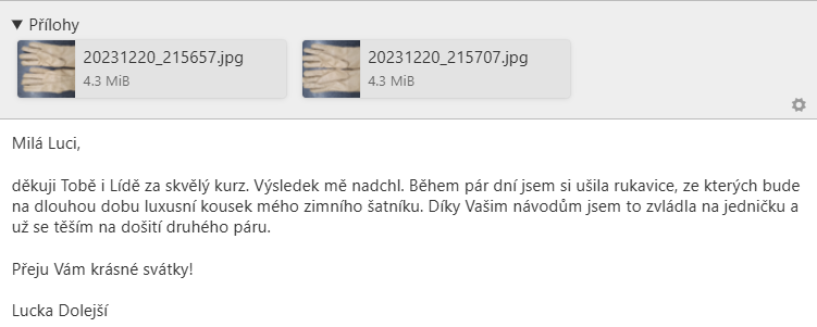 a já vám po zaplacení obratem pošlu instrukce ke změření ruky a výběru vaší kreativní sady, včetně odkazu, kde si kreativní sadu samy navolíte a včetně vašeho unikátního slevového kódu na sadu.